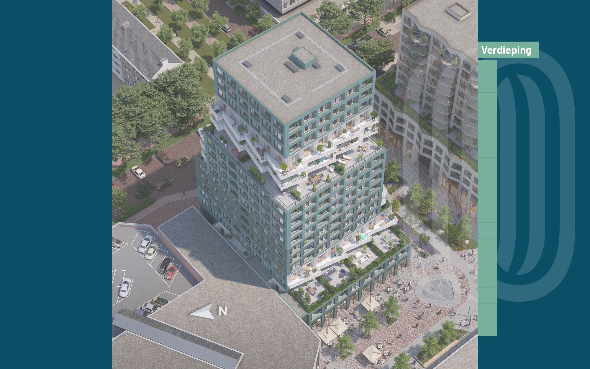 The Orchard 2 telt zestien verdiepingen die speels op elkaar gestapeld zijn. Op diverse hoogtes springt het bouwvolume iets in, waardoor dakterrassen ontstaan, die deels met groen worden ingericht. Op die hoogtes zijn aan één zijde driehoekige balkons geplaatst, waardoor het silhouet van het gebouw een soort twist maakt. Een echte eyecatcher in het nieuwe stadscentrum!