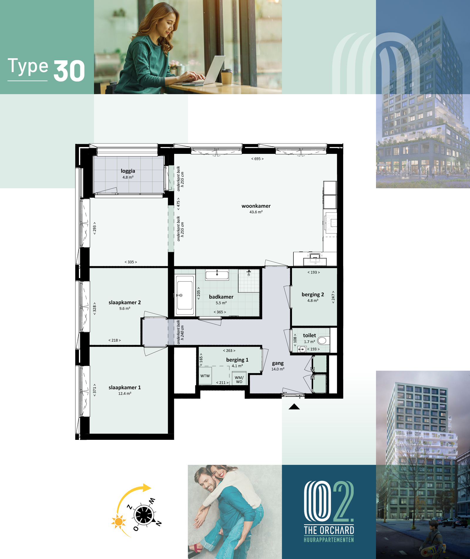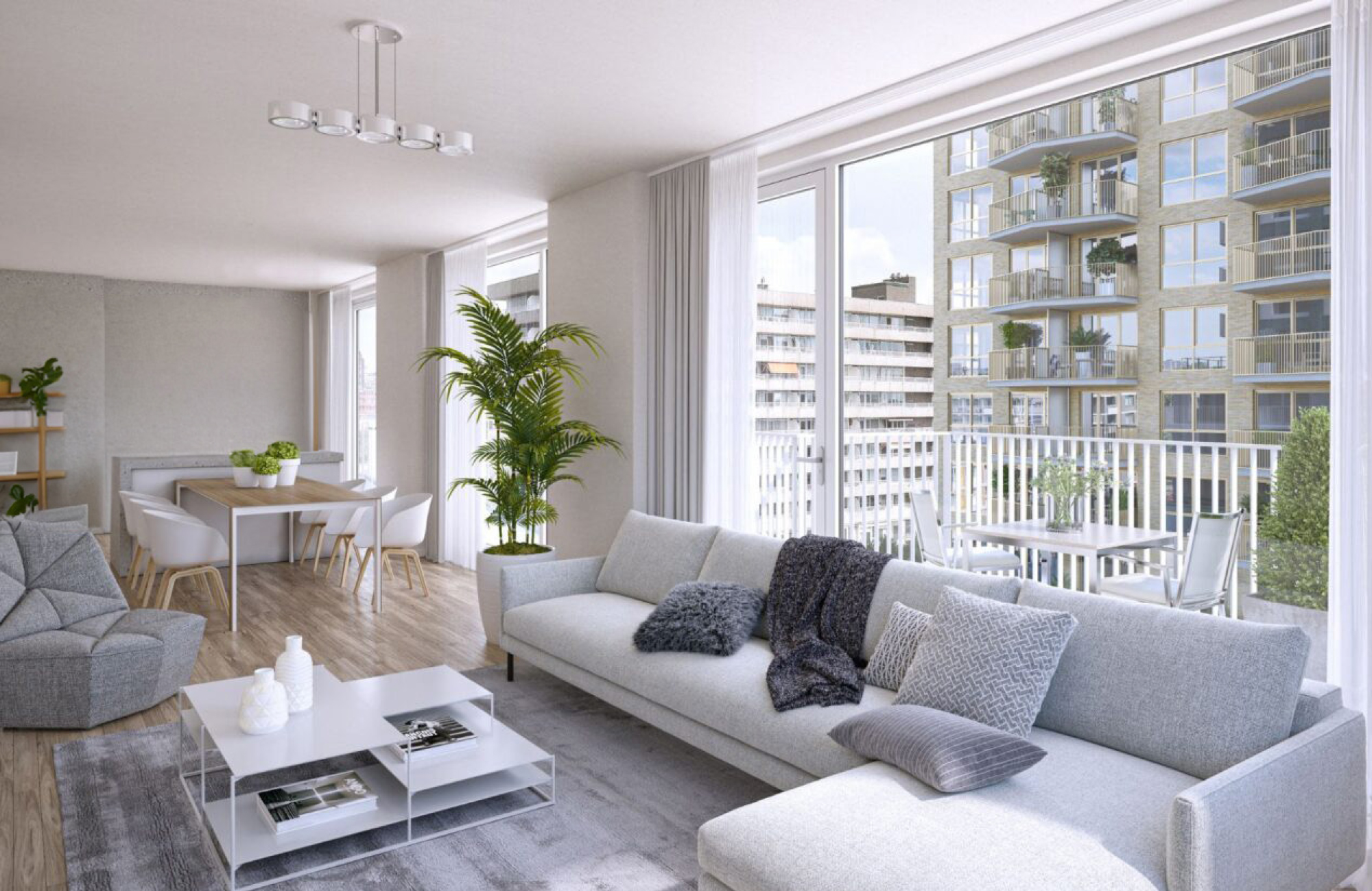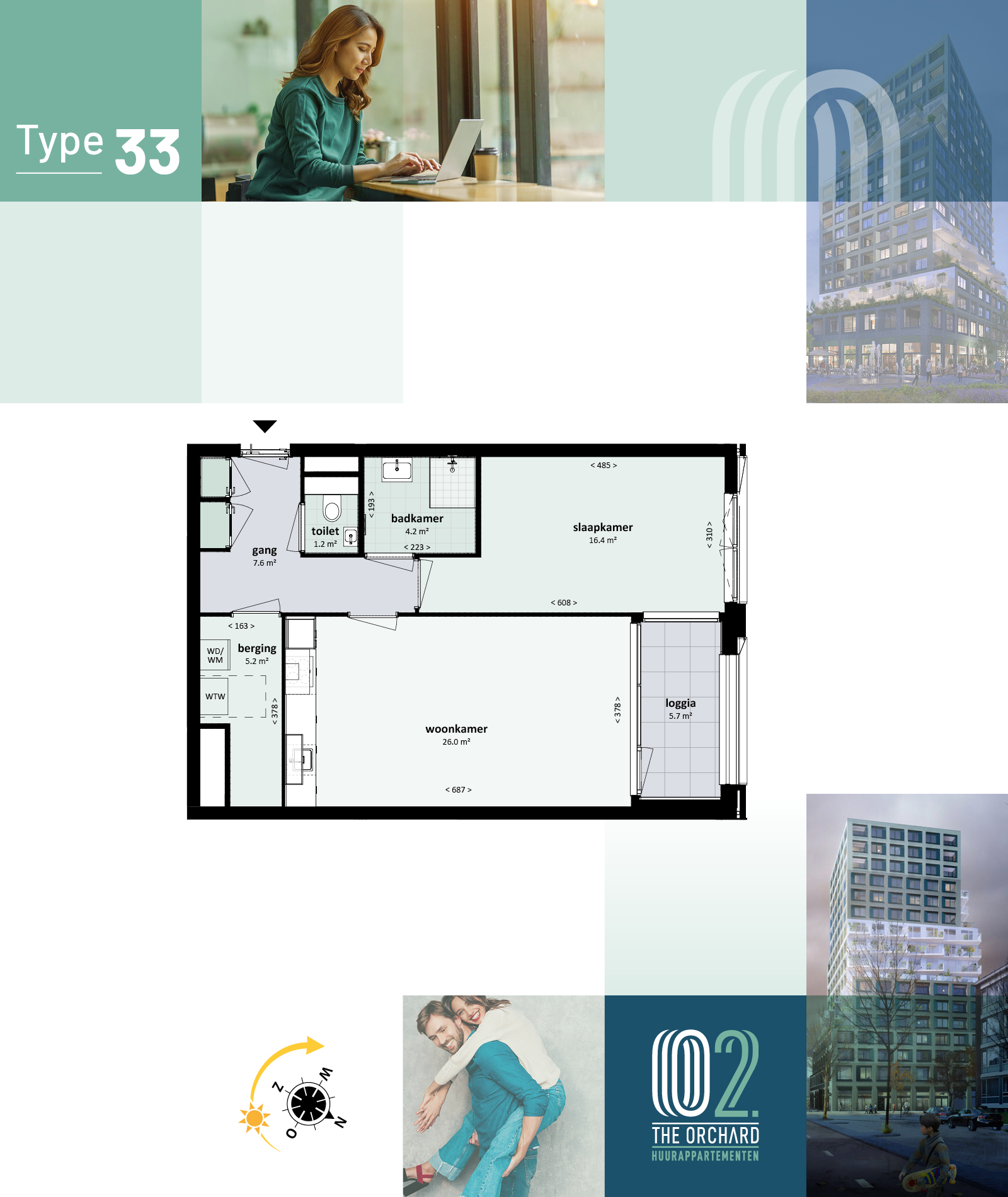 - De badkamer is uitgerust met een wastafel (60 cm) met mengkraan en spiegel, een hardglazen douchedeur en een elektrische handdoekradiator. De wanden van de badkamer worden betegeld met witte glanzende wandtegels in de afmeting 30x45 cm (liggend verwerkt) tot aan het plafond. De vloer wordt voorzien van donkergrijze vloertegels in de afmeting 30x30 cm.